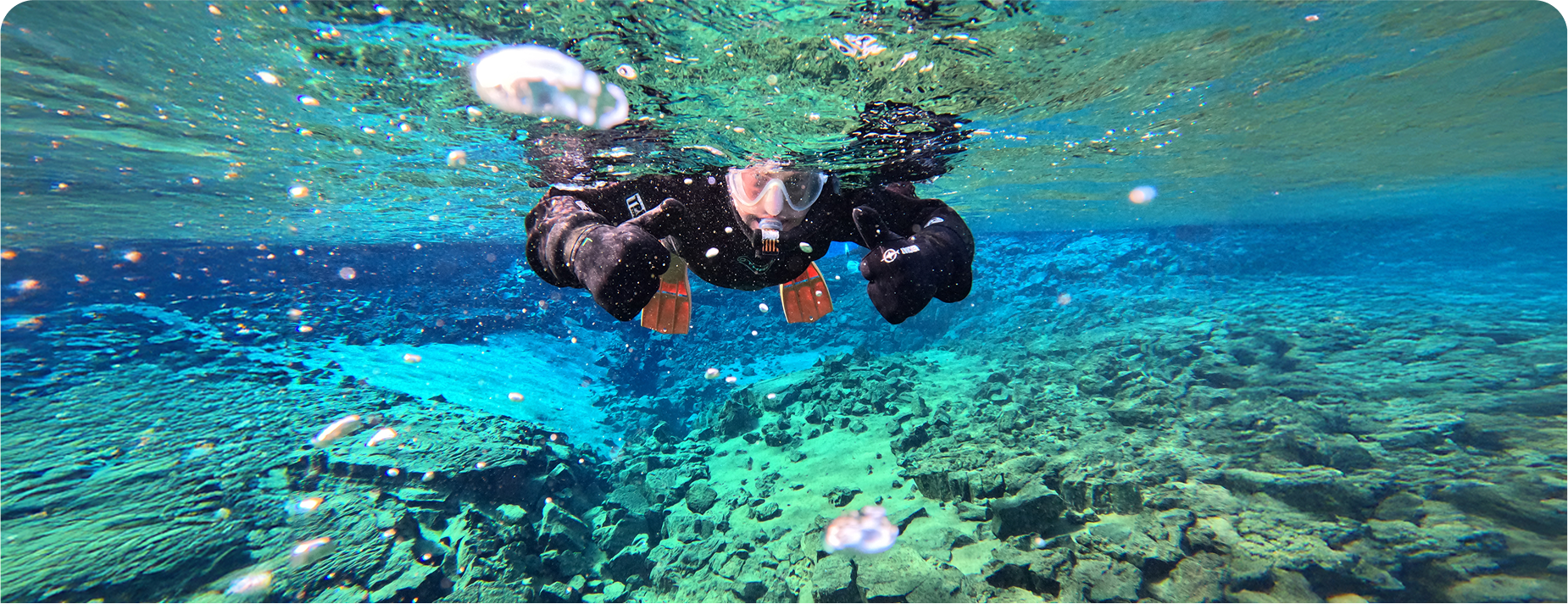 Once you get to the location, it is important to give your snorkeling guide a filled medical form (it is important to read the medical form before booking the tour). Your guide will then give you all the equipment – a thermal undersuit to keep you warm, a dry suit to keep you dry, fins to swim, and other necessary snorkeling equipment.