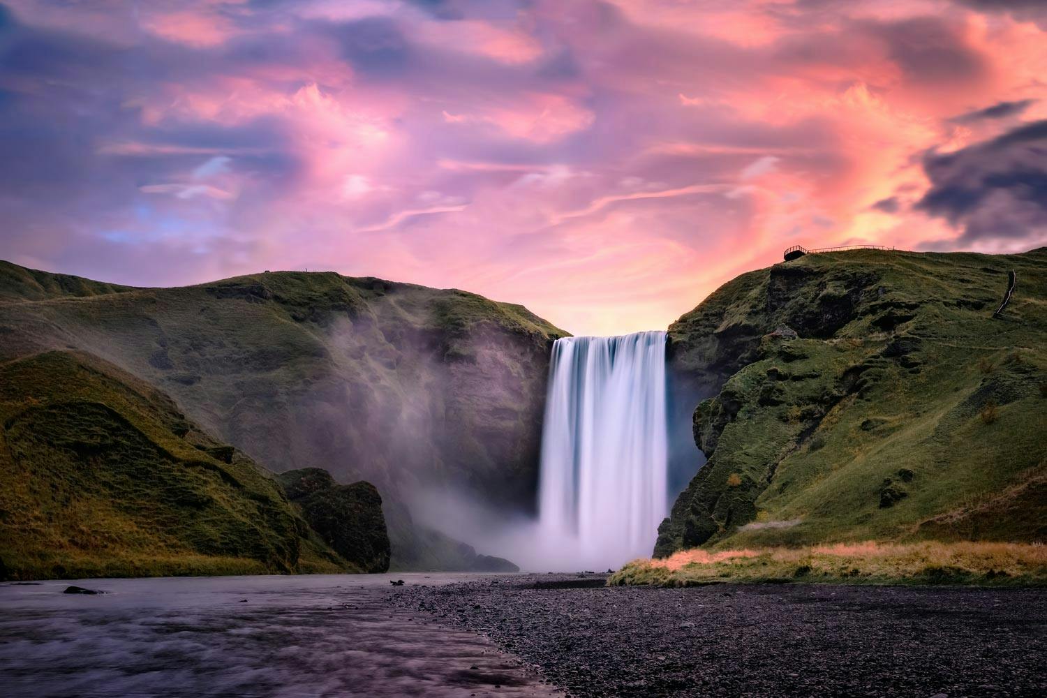 The scene behind the fall and the trembling ground from the power of the falling water makes it super easy to take awesome photos. Just be sure to take a rain jacket and a protection for your camera so it doesn’t get wet. Also it is recommended wearing hiking boots or waterproof boots so your feet do not get soaking wet.