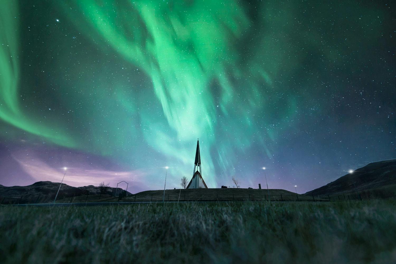 A rooftop on the outskirts of Reykjavik can provide an excellent vantage point if conditions are right. In short, the less light you have around you that is coming from buildings or vehicles, the better your chances. Pair that with a cold and clear night and you might just get lucky.