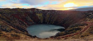 Beyond the classic stops, this tour includes a visit to the Brúarfoss Waterfall, often called "Iceland's Bluest Waterfall," where silky, sapphire-blue water contrasts sharply with dark lava rocks. You will then see the magnificent Gullfoss ("Golden Waterfall"), where the glacial river plunges into a deep canyon. The final highlight is the Kerid Volcanic Crater, known for its unique red walls surrounding an aquamarine-blue lake. The entire journey is guided in English, and you will return to Reykjavík in the early evening.