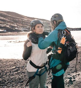 The tour begins at our comfortable meeting point in Hof, located very close to the glacier. Our indoor facility is cozy and offers free parking, which allows you to avoid the parking fees charged at the Skaftafell Visitor Centre. Please arrive 20 minutes before departure to meet your highly qualified English glacier guide. All essential safety gear is provided, including a helmet, crampons, harness, and ice axe.