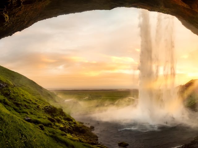 The waterfall has a cave-shaped cliff behind it, making it possible to walk behind the waterfall. The scene behind the falls and the trembling ground from the power of the falling water will leave you an unforgettable feeling.