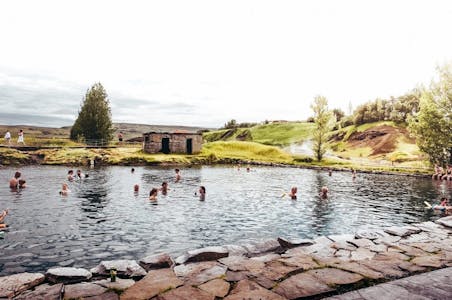Experience the supreme of Iceland on this amazing tour, where you can snowmobile on a glacier and relax in a geothermal hot lagoon. Your adventure begins with a pick-up in Reykjavik, followed by a drive to the glacier. Once there, you will take a snowmobile trip on Iceland's second-largest glacier, covering 400 square kilometers of solid ice with the highlands in the rearview mirror. During the journey, there will be a photo stop. After your snowmobiling adventure, you will be taken to the Secret Lagoon in Flúðir, a natural geothermal spring with minerals and salts that benefit your skin. The lagoon has new facilities with separate showers for men and women. Don't forget to bring your bathing suit.