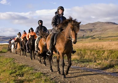 Explore the Icelandic countryside on a guided horse riding tour through diverse natural terrain. Highlights include riding across ancient lava fields, crossing a small river, and traversing scenic meadows with views of volcanic mountains. You will have the opportunity to experience the tölt, a smooth and unique gait exclusive to the Icelandic horse. The tour also offers a factual look at the evolution of Icelandic agriculture as you pass local farmsteads, concluding with traditional coffee and homemade cake.
