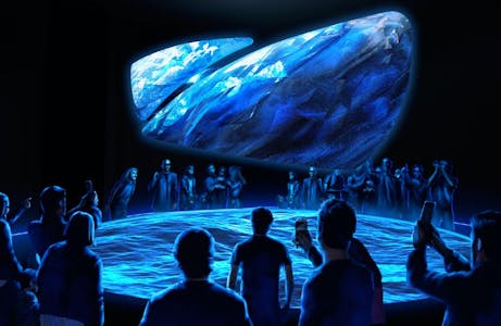 The Well of Time is an immersive exploration journey through Iceland's history. Your guide is Sú Vitra, a character based on local troll legends designed by illustrator Brian Pilkington. She is older than the human imagination can fathom and symbolizes the wisdom and enchantment of Iceland. She'll guide you using video, imagery, music, and sound, and the forces of nature come to life.