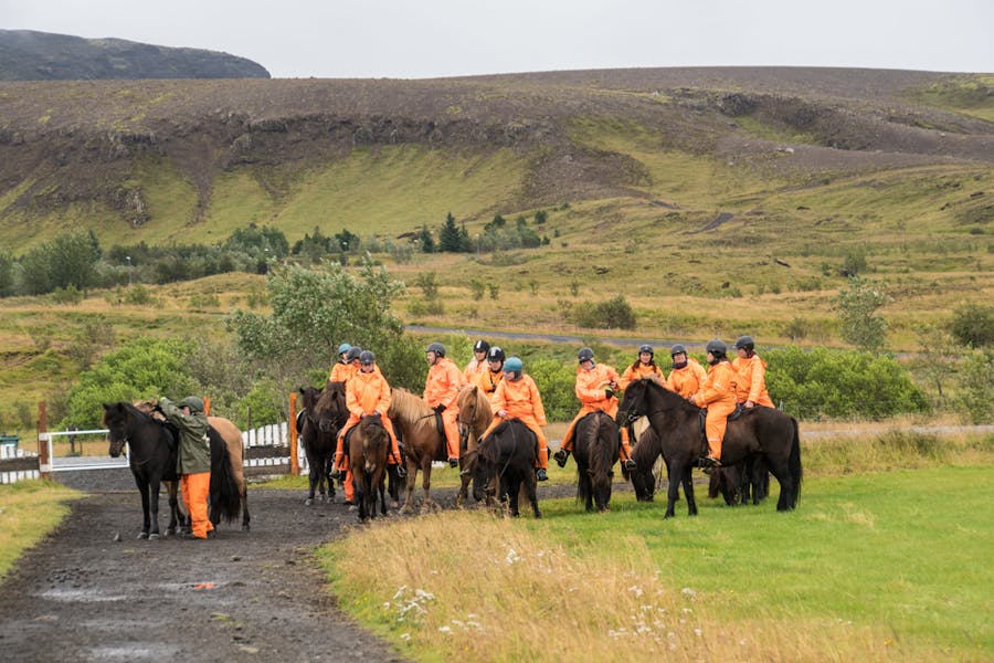 Eldhestar has strict security measures in place. For safety reasons, you cannot bring backpacks, large cameras, selfie sticks, or other bulky items on the horses. Small waist bags are allowed. Horse riding is a potentially risky activity; you participate at your own risk.
