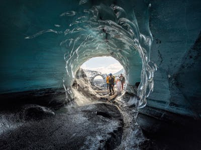 • Not suitable for clients with mobility limitations. • Jeans are not recommended for glacier activities. Once it gets wet, it takes a long time to dry, leaving you cold. • Ice caves are a dynamic, ever-changing natural phenomenon. Each year new unique caves are formed in different areas of the glacier. The photos on our website and social media are from this season, but the ice cave we visit might have changed due to the dynamic nature of these formations. • There are several ice caves and ice formations available in the area; the access to certain locations might be affected by the weather conditions.