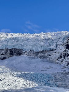 As you hike your guide will explain the geology of Falljökull. You will encounter dramatic ice formations like deep cracks (crevasses) and vertical shafts (moulins). In winter, you may even look into small ice tunnels. From the highest point, you will get to observe, panoramic views of the Skaftafell National Park. Your guide will provide a factual and educational overview of how glaciers are formed, discuss safety, and explain the current impacts of global warming. After returning to the meeting point, enjoy a complimentary hot drink (coffee/hot chocolate) and a candy bar.