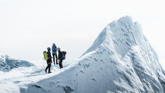 After a short ride on the "Tröll Bus," you will walk a short distance to the edge of the glacier. Your guide will demonstrate how to use the equipment and how to safely walk on the ice. During the walk, you'll observe how the receding ice has shaped the surrounding landscape, noting visible marks on the bedrock and a lagoon formed by meltwater.