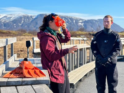 Once you get to the location, it is important to give your snorkeling guide a filled medical form (it is important to read the medical form before booking the tour). Your guide will then give you all the equipment – a thermal undersuit to keep you warm, a dry suit to keep you dry, fins to swim, and other necessary snorkeling equipment.