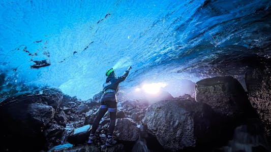 Once you arrive at the glacier, you’ll step into a magical world of glittering blue ice. The caves are natural formations that shift and change each year, so the exact cave visited will depend on the day’s weather and safety conditions. Inside, you’ll be surrounded by otherworldly ice walls, stunning formations, and possibly even intricate tunnels or crevasses to explore.