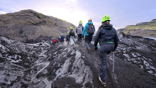 Tie your hiking boots and put on your adventure hat because Sólheimajökull glacier will blow your mind. You'll feel like you have landed on the moon walking on ice and volcanic ash. We'll provide you with ice axes and basic ice climbing techniques for you to climb up as you rise from the ice wall of a glacier crevasse.