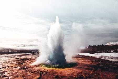 After Þingvellir, we will continue heading inland towards an active Geysir, where we will also find boiling mud pools and hot springs. The Geysir normally erupts every 2-5 minutes, however as this is a natural phenomena, it might sometimes take longer.