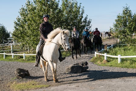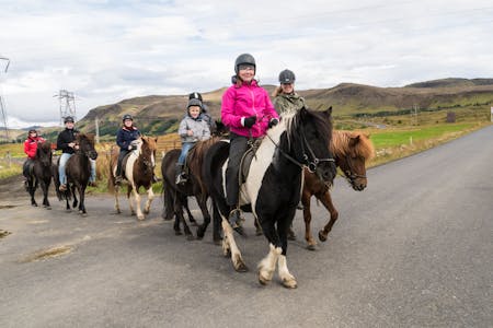On this tour, we will take a journey through meadows, lava fields, and a small river, admiring the volcanic mountains and farmland. Along the way, we will get a glimpse into the evolution of agriculture by visiting various farms. On top of that, we will be able to experience the unique gait of the Icelandic horse, the "tölt," on the lovely riding trails. We invite you to have coffee and home-baked cake to finish the tour.
