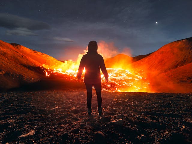 We go as close as authorities allow us to witness this amazing event, where we will see the erupting volcano and flowing lava.
